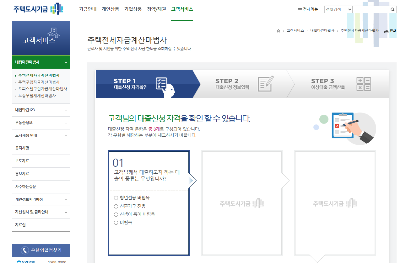 주택도시기금 소개, 주택구입(내집마련디딤돌 등), 전세자금, 월세대출, 국민주택채권, 주택청약, 신혼부부대출