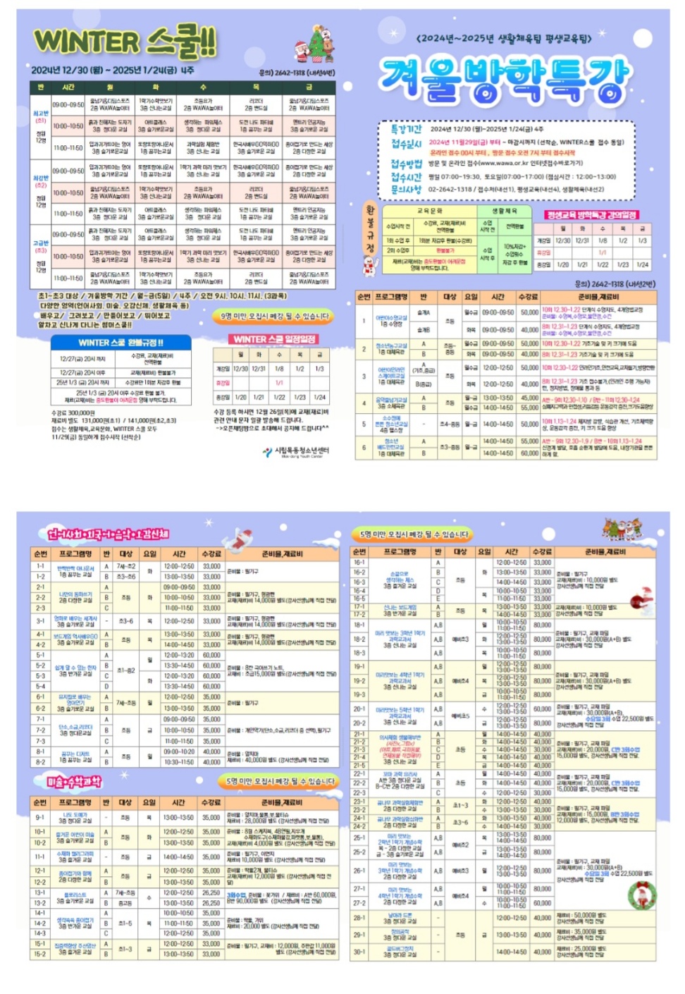 겨울방학 초등학생 대상 오전 프로그램이 있습니다.