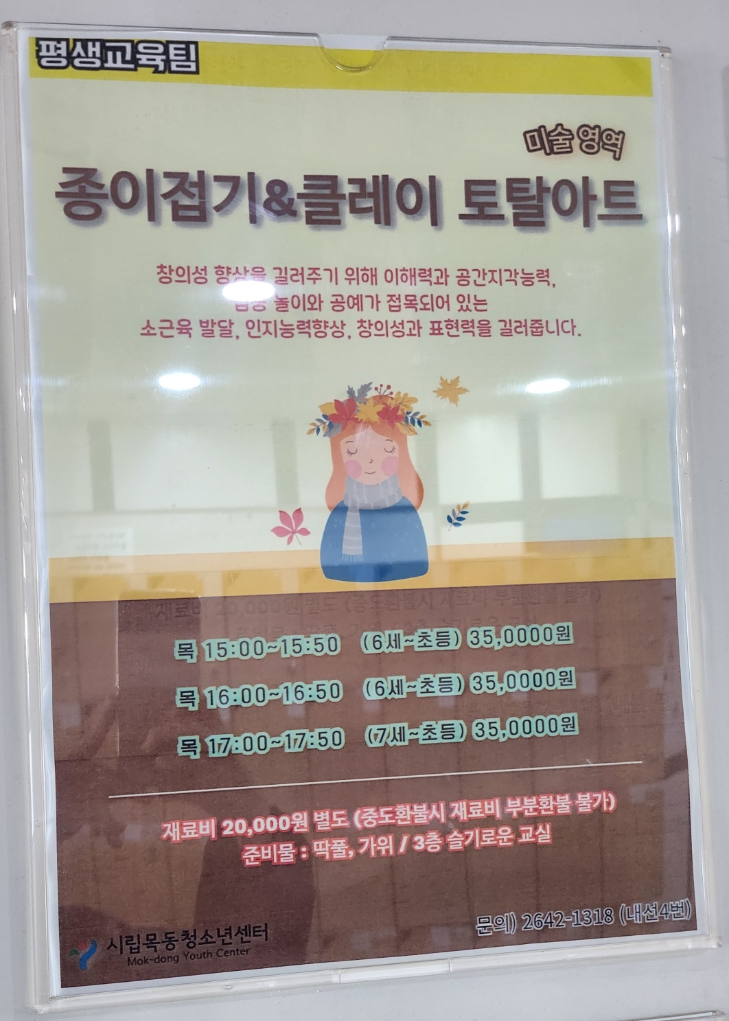 5. 참여 방법목동 시립 청소년센터의 프로그램에 참여하고 싶다면, 공식 웹사이트나 전화로 사전 신청을 할 수 있습니다. 대부분의 프로그램은 무료로 제공되며, 일부 프로그램은 유료로 운영됩니다.