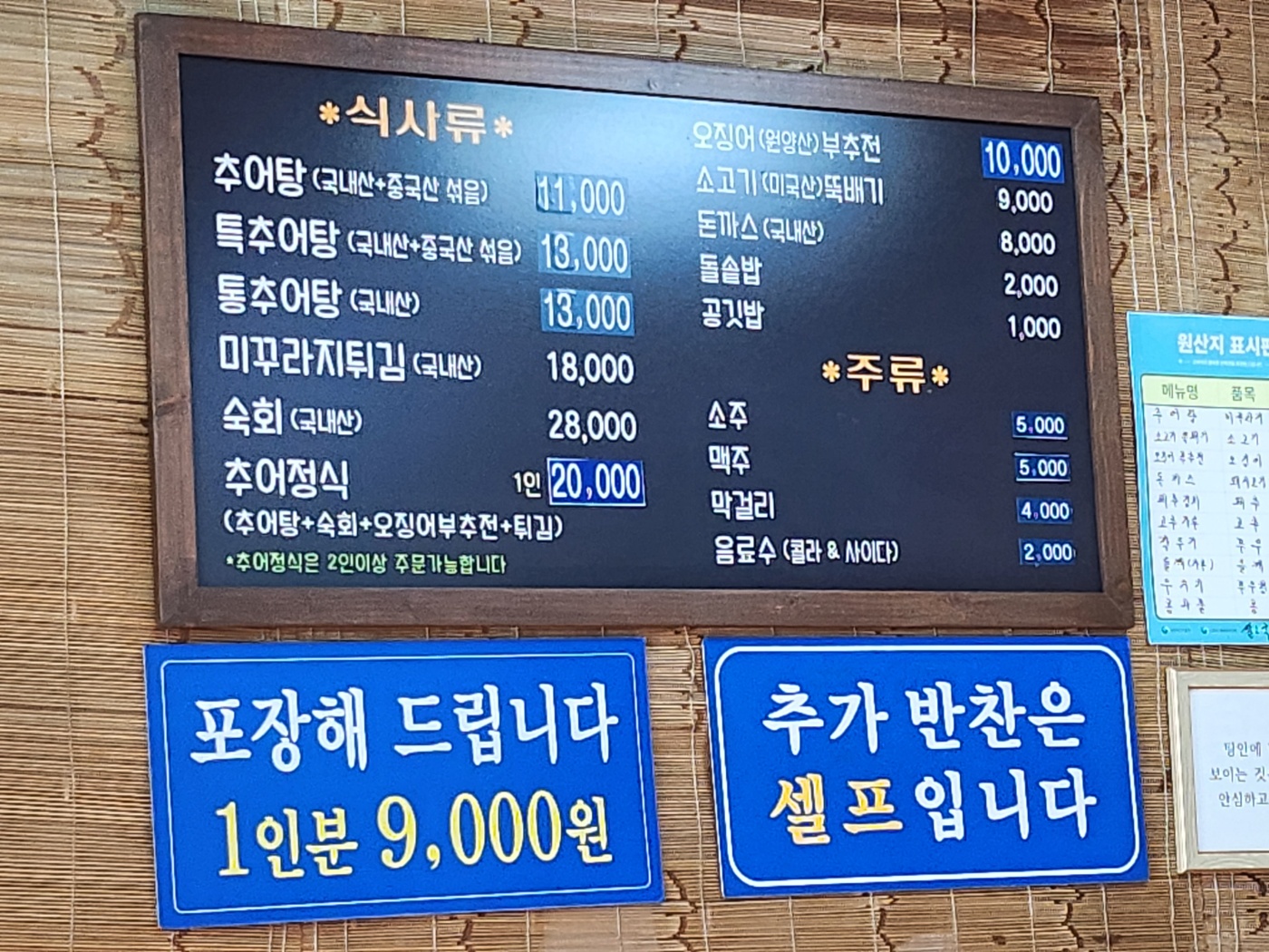 -추어탕: 기본 메뉴로, 깊고 진한 국물 맛이 일품입니다.