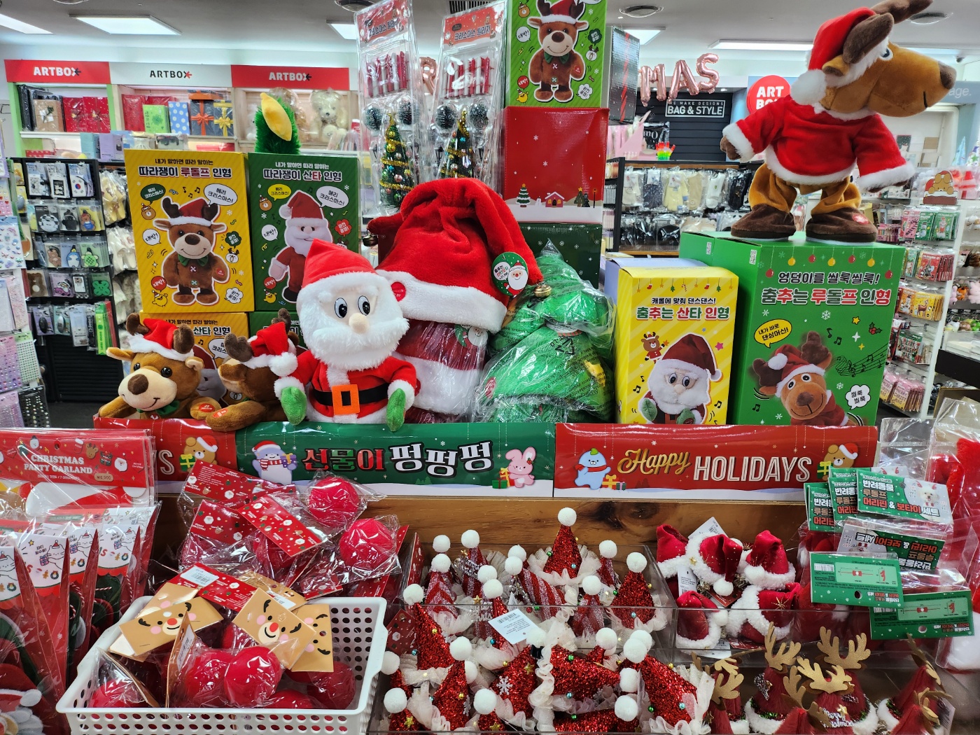 2025달력, 크리스마스 소품, 크리스마스 포장지, 크리스마스 카드. 헤어액세서리 모두 준비되어 있어요.