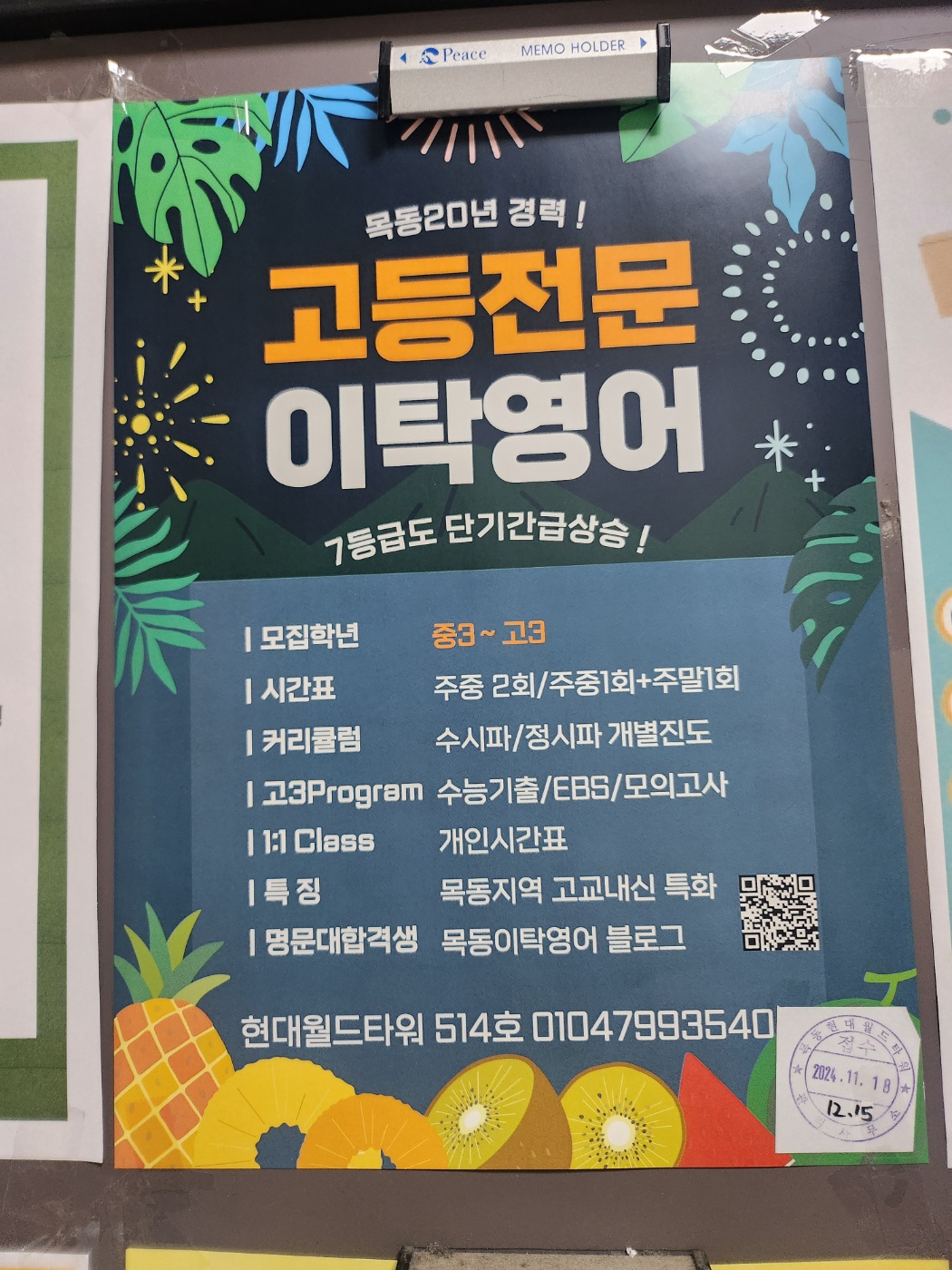 목동 현대 월드타워가 위치한 목동 학원가는 서울에서 손꼽히는 입시 학원 밀집 지역입니다. 수학, 영어, 과학, 국어 등 주요 과목뿐만 아니라 특목고, 자사고 입시,대학 입시, 외국어와 관련된 학원들이 밀집해 있어 학생들이 원하는 분야의 학습을 집중적으로 할 수 있는 환경을 제공합니다. 현대 월드타워 주변에는 대학 입시 학원, 수능 대비 학원, 특정 과목 전문 학원들이 많아, 입시를 준비하는 학생들에게는 매우 중요한 장소로, 학원들이 이곳에 밀집해 있어 교통이 편리하고 다양한 선택이 가능합니다.