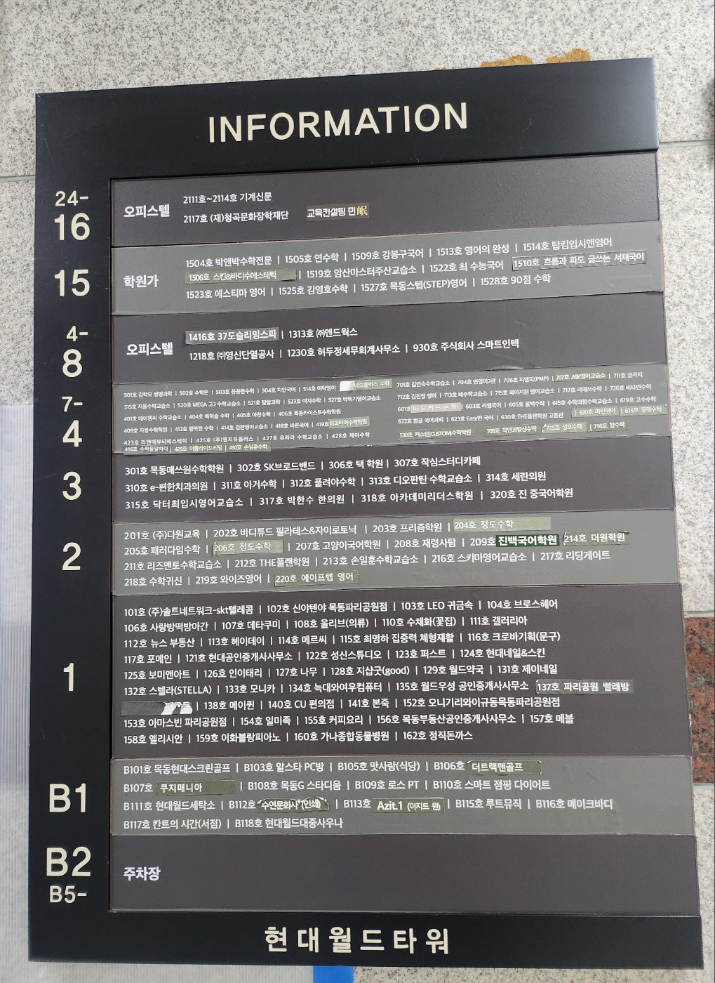 3층- 목동매쓰원수학학원, sk브로드밴드, 택학원, 작심스터디카페, e-편한치과, 아거수학, 풀려야수학, 디오판틴 수학교습소, 세란의원,닥터최입시영어교습소, 박한수 한의원, 아카데미리더스학원, 진 중국어학원