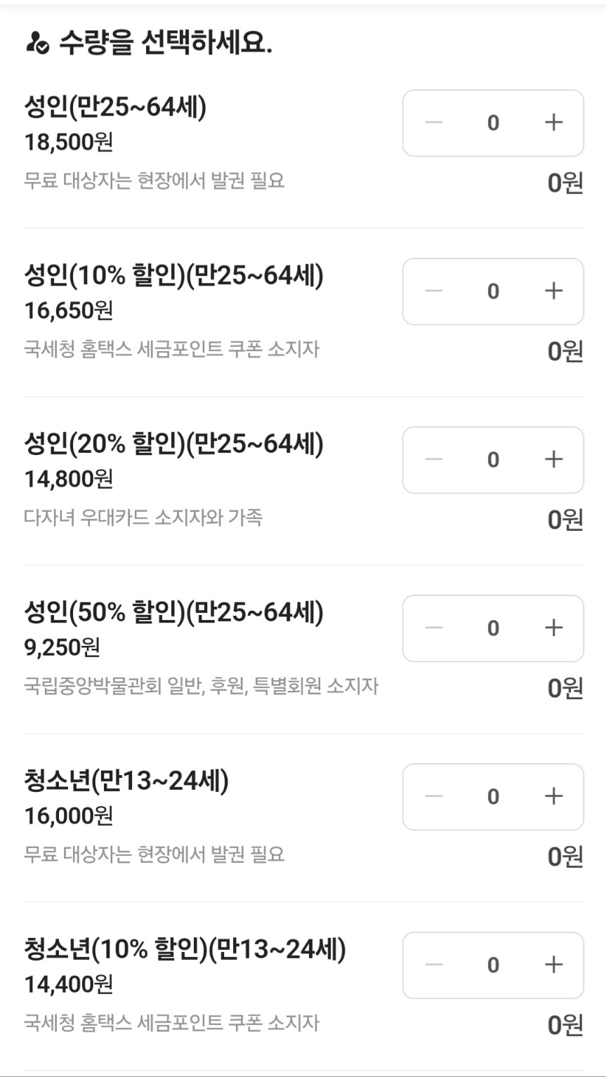 티켓 가격입니다. 할인되는 게 있는지 확인해 보세요!