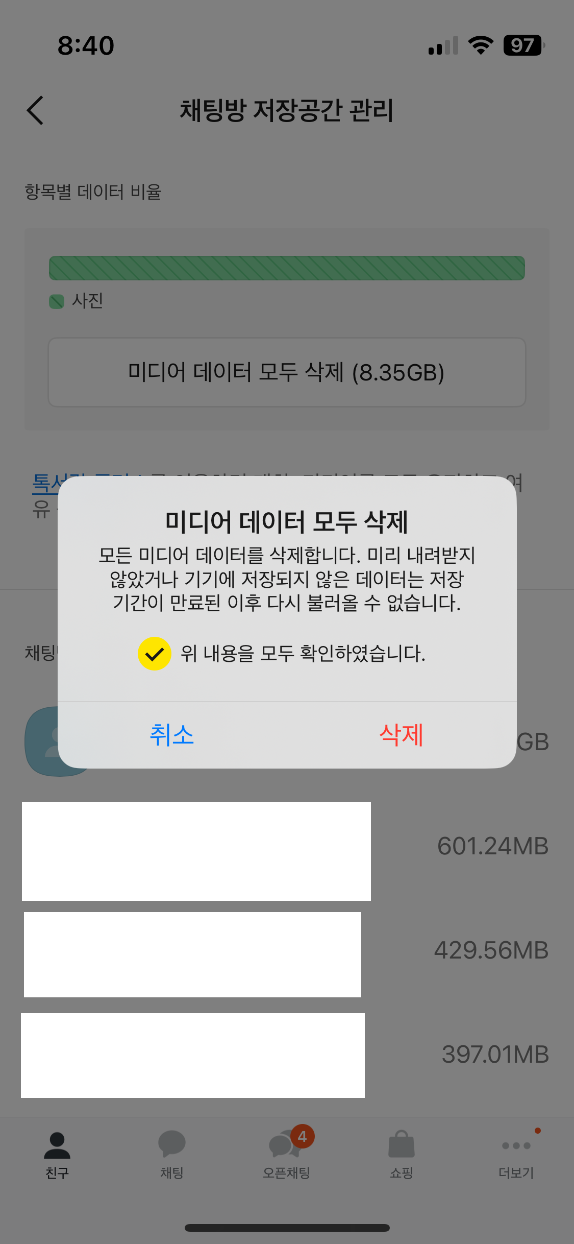 8. 개인적으로 제일 도움됐던 카카오톡 용량 삭제