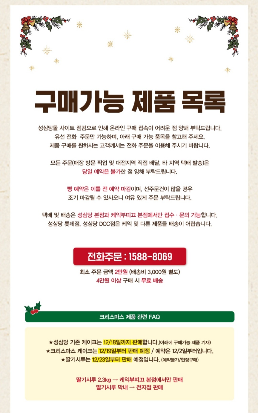성심당 크리스마스 제품은 11월 18일부터 구매 가능해요.
