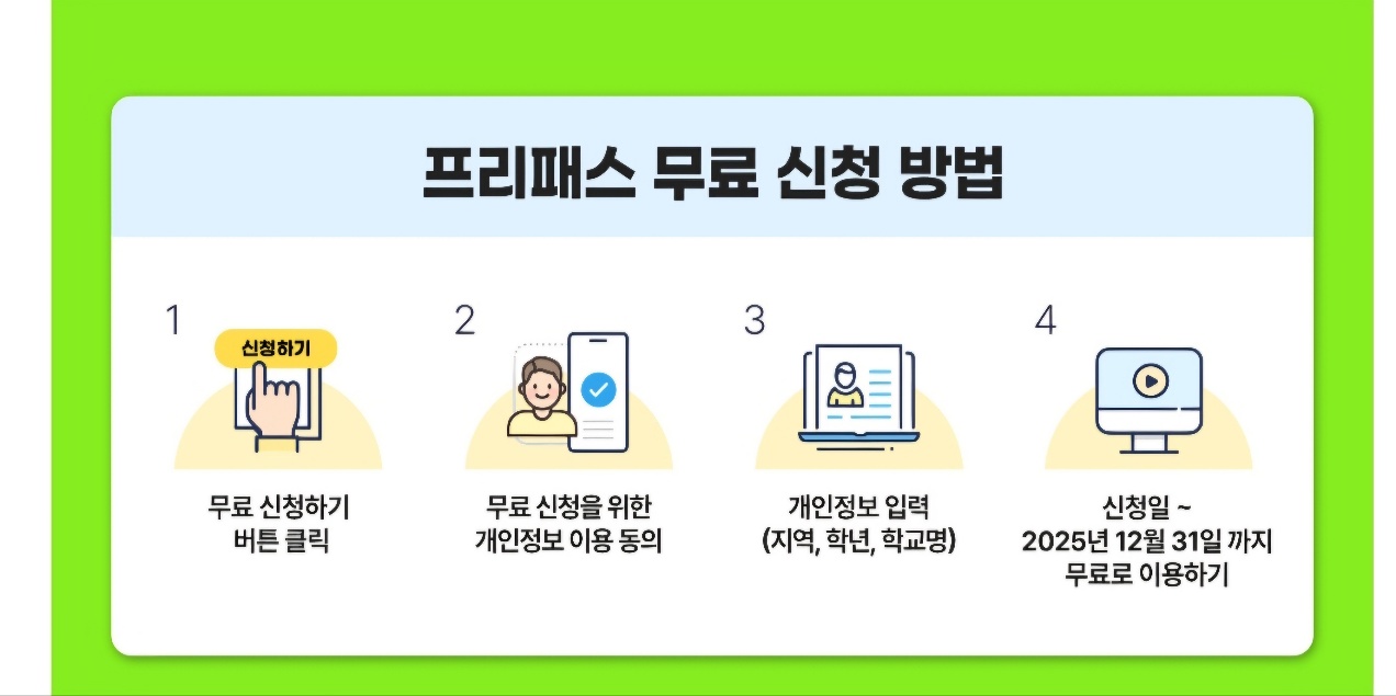 프리패스를 통해 학생은 시간과 장소에 구애받지 않고, 언제든지 원하는 학습 콘텐츠를 이용할 수 있습니다. 다양한 학습 자료와 동영상 강의를 통해 자기주도적인 학습이 가능하며, 부족한 부분을 보충할 수 있는 기회를 제공합니다.